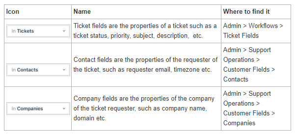 -ドロップダウンを使って、フィールドのタイプを選択してください。(チケット、連絡先または会社)
