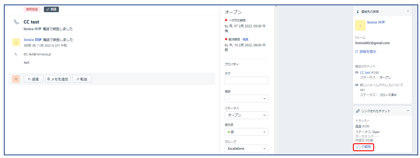 -トラッカーからチケットのリンクを解除するには、 リンク解除ボタンをクリックしてください。
