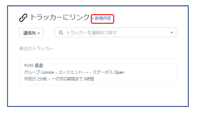 機能のインストールが完了しましたら、エージェントが受信チケットの傾向に気づいた時に既存のトラッカーを探し、チケットとリンクまたは新規トラッカーを作成できます。