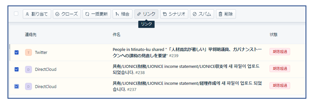 トラッカーが作成されると、より結合性を高めるために既存のチケットとリンクすることができます。チケットはチケットリストビューページまたはチケット詳細ページからトラッカーと関連付けできます。