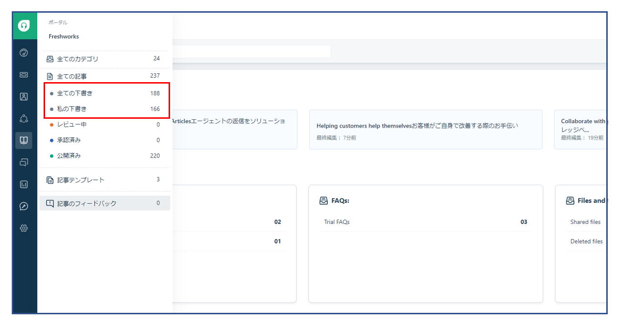 -下書きセクションの下にナレッジベースのドラフトが作成されます。