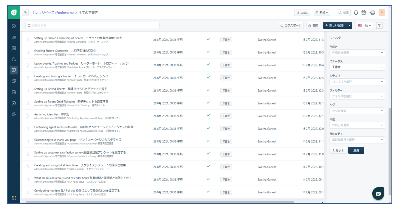 コンテンツ作成と管理エクスペリエンスは完全に再構築され、複数の製品と言語によるコンテンツを、サポートチームがシームレスに管理できるようになりました。